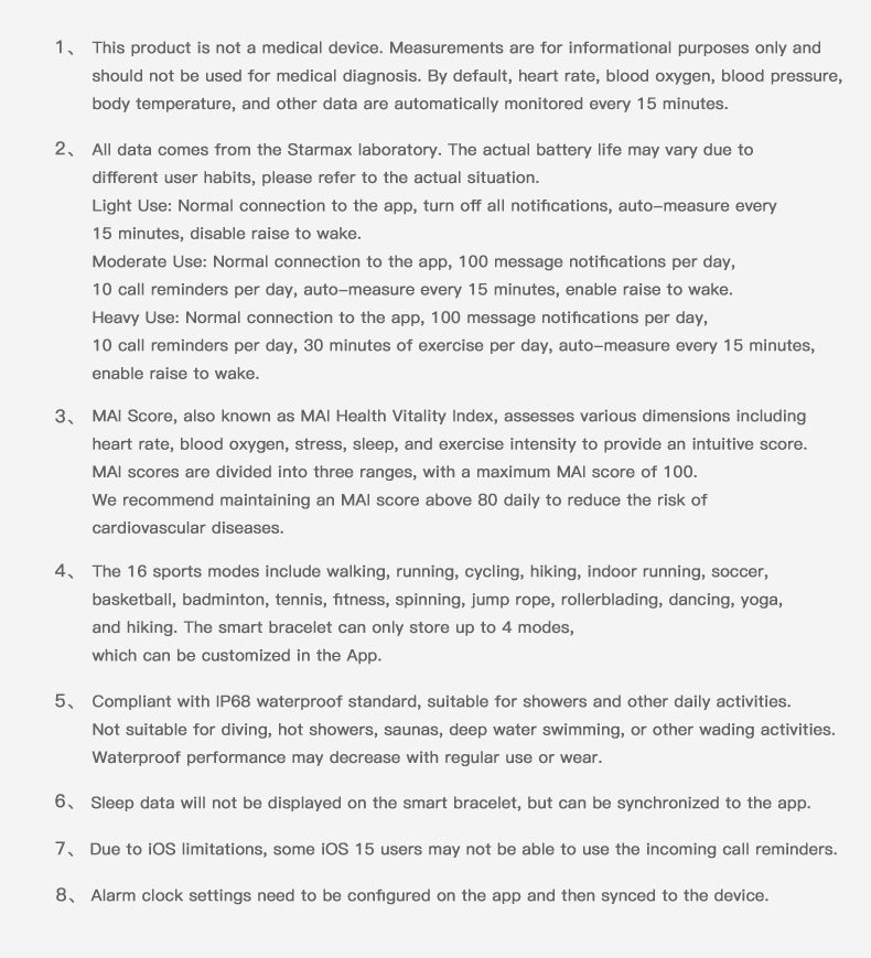 WARNING: This product is not a medical device. Measurements are for informational purposes only and should not be used for medical diagnosis. By default, heart rate, blood oxygen, blood pressure, body temperature, and other data are automatically monitored every 15 minutes.